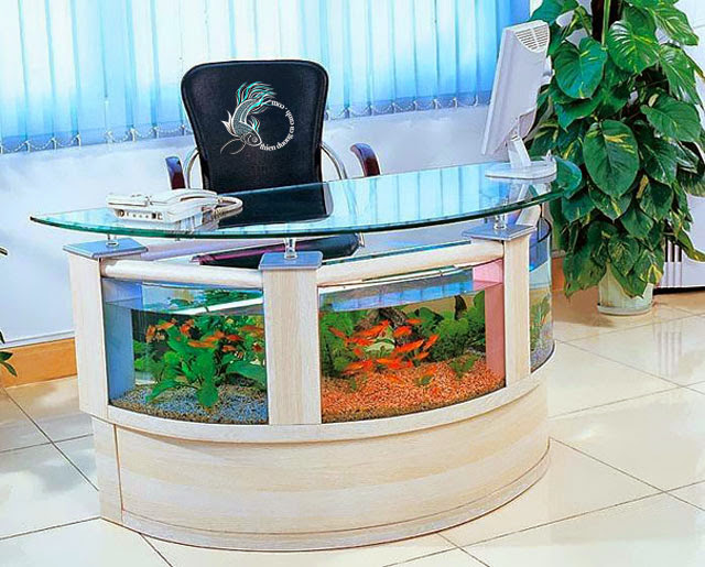 Đặt bể cá cảnh trên bàn làm việc hợp phong thủy giúp bạn gặpi nhiều điều may mắn và tài lộc.